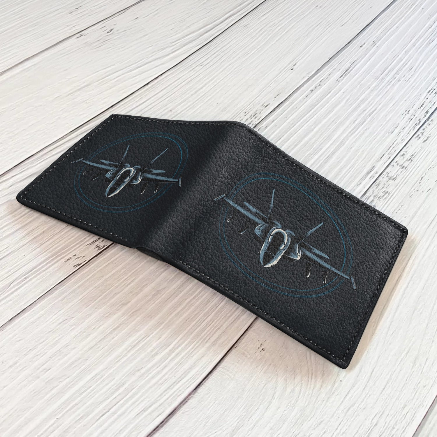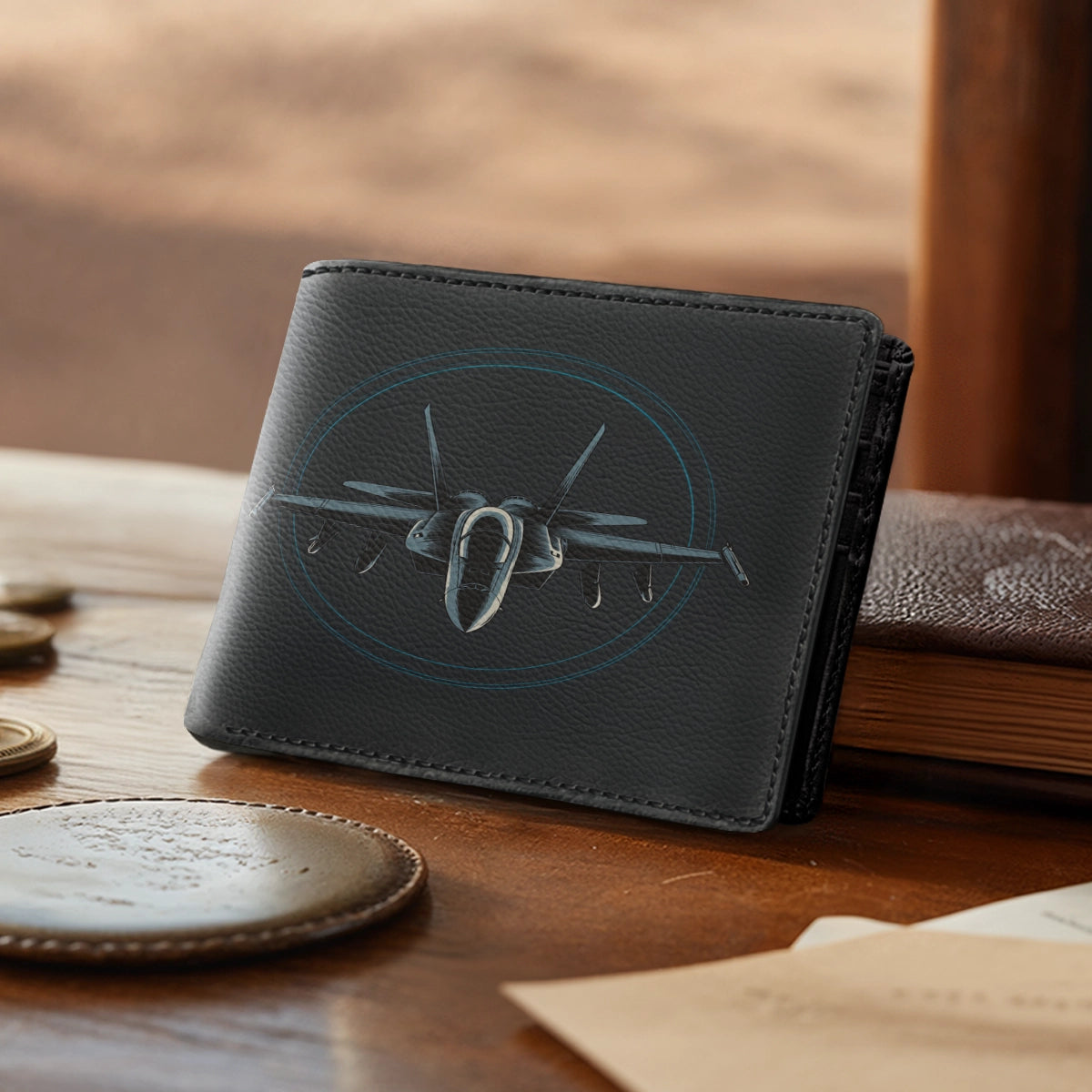 The Falcon Strike Wallet celebrates the precision and dominance of modern air power. With a fighter jet locked in the radar’s circle, this design symbolizes accuracy, speed, and the fearless spirit of pilots who rule the skies.