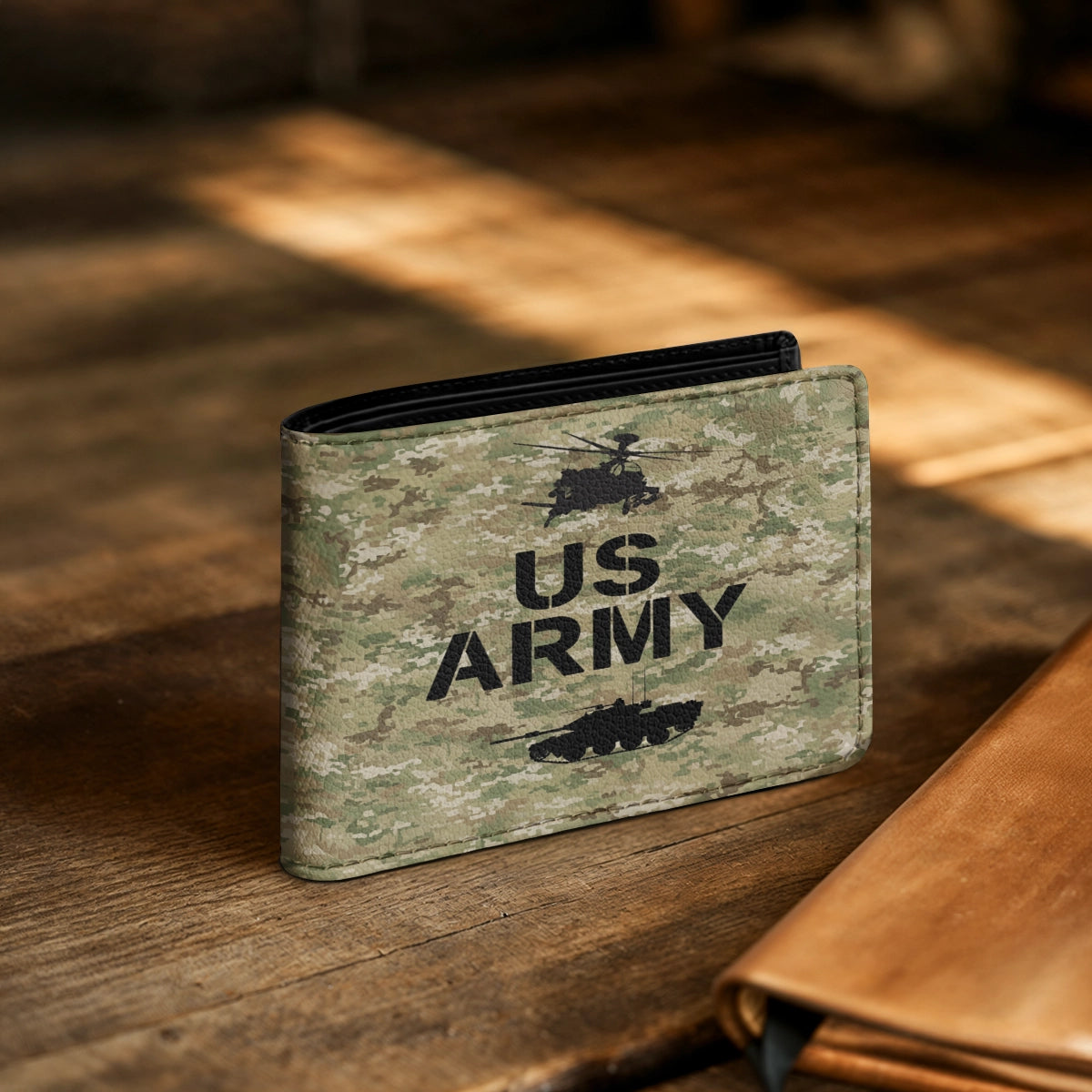 The Army Camo Pride Wallet is more than just an accessory — it’s a tribute to courage, discipline, and service. Featuring camo background with a battle tank and helicopter silhouette, this wallet embodies the spirit of U.S. Army warriors.