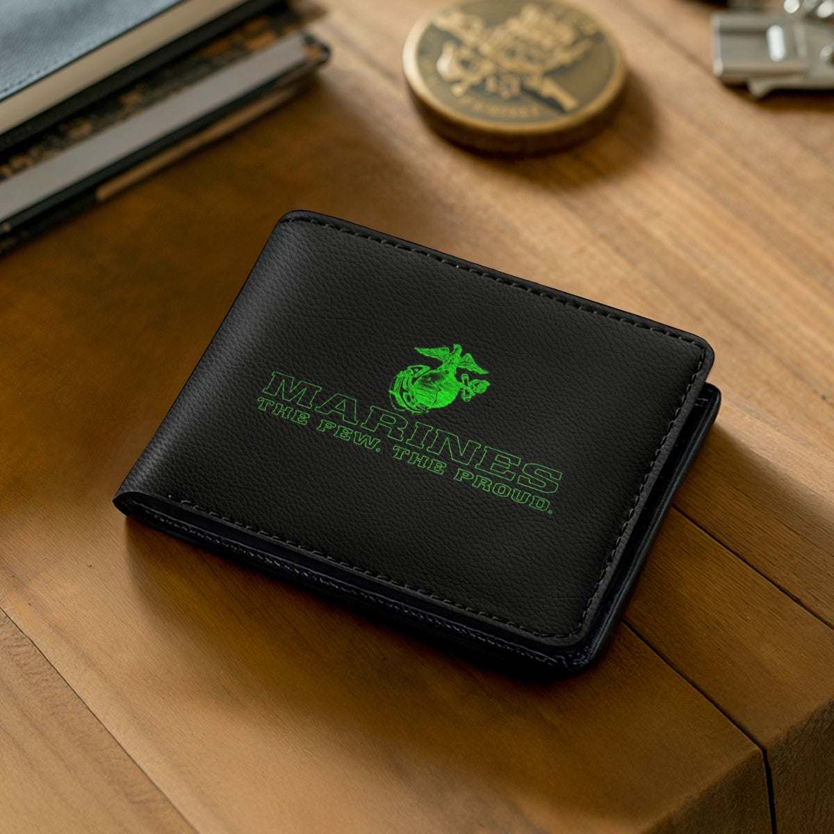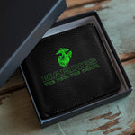 Made from premium genuine leather, the Marine Legacy Wallet blends military grit with refined craftsmanship. Tough yet sleek, it’s a symbol of service, pride, and the strength of those who live by honor and loyalty.